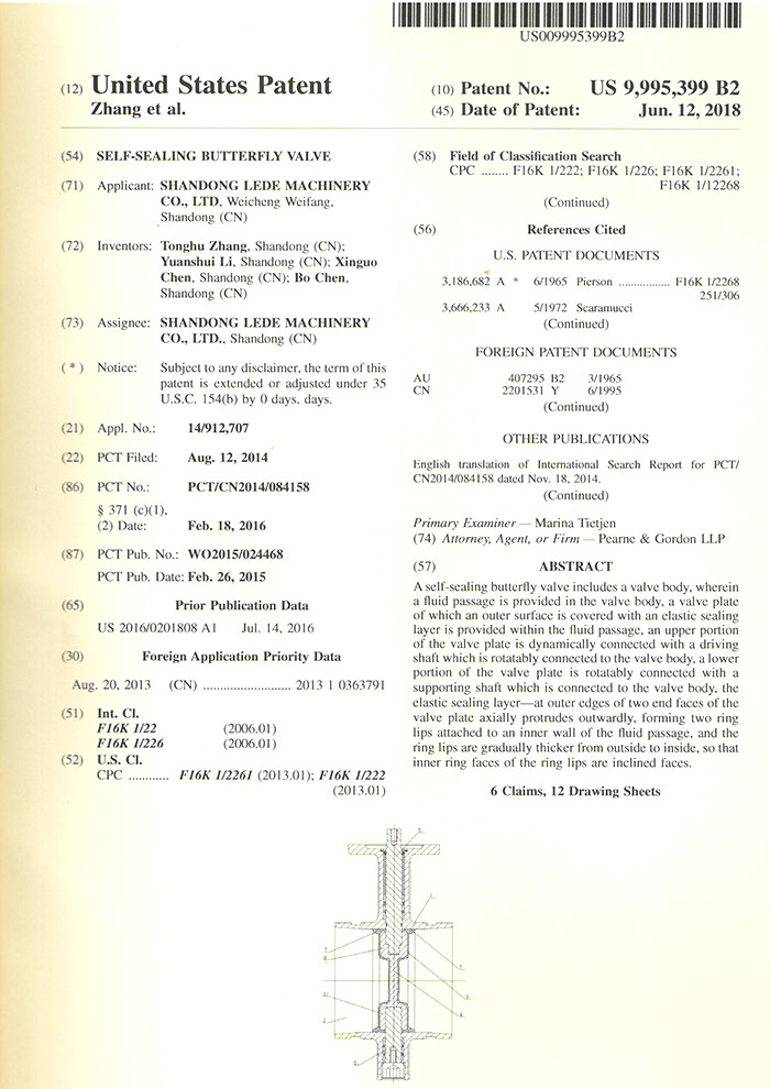 自密封中線(xiàn)蝶閥(日本專(zhuān)利)